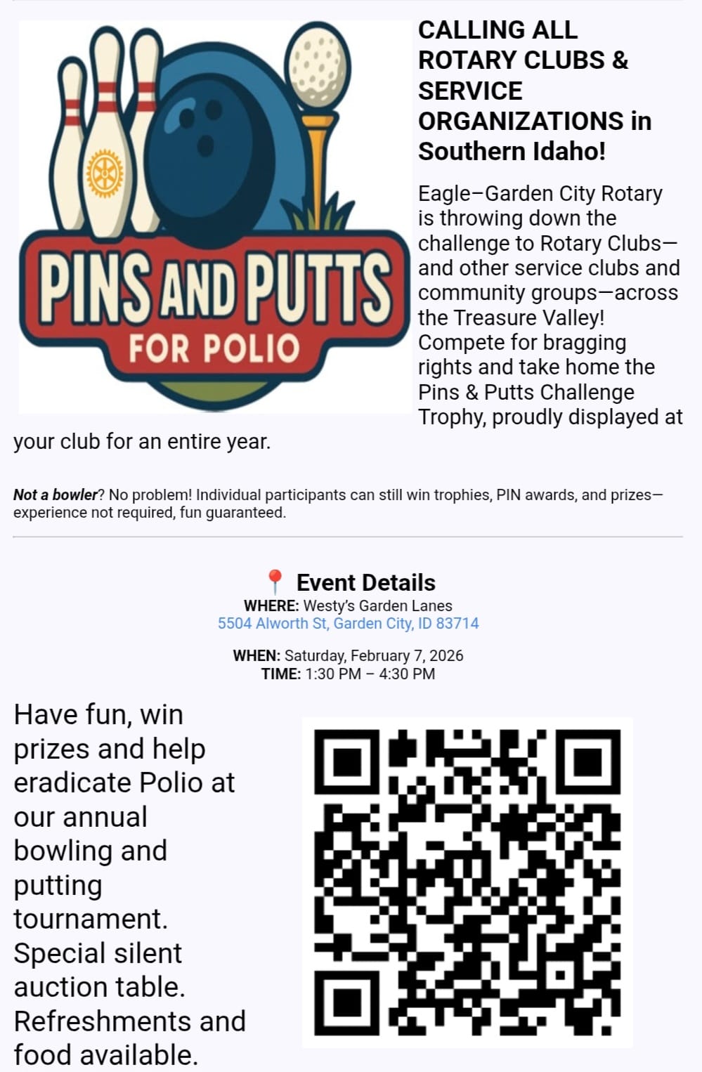 The 38th annual Polar Bear Challenge will be January 10th at Spring Shores Marina at Lucky Peak. Jade, our RYE student, has challenged us to contribute to Make-a-Wish on her behalf. District 5400 will have a team so don't be bashful! Last year, they raised $3900! Reese has done it and Cornelia is considering it. Its a big party on the beach, whether you dunk or not, starting at 11:00AM. You can contribute to Jade's account via Venmo to Metro Rotary.